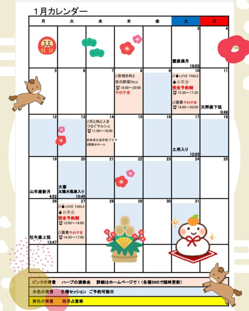 1月の天体の動きと